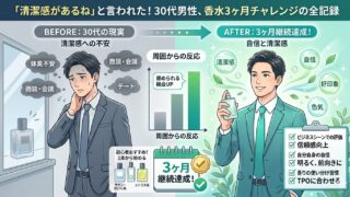 メンズ美容総合 香水を使い始めた30代男性に起きた変化。続けてわかったリアルな効果と注意点 30代男性が香水を始めた実体験を徹底解説。初めての香水選びから失敗談、成功談まで、3ヶ月間の体験を通じて見えた変化と効果、周囲の反応、おすすめの選び方と付け方を紹介。 2026年03月08日 メンズ美容総合